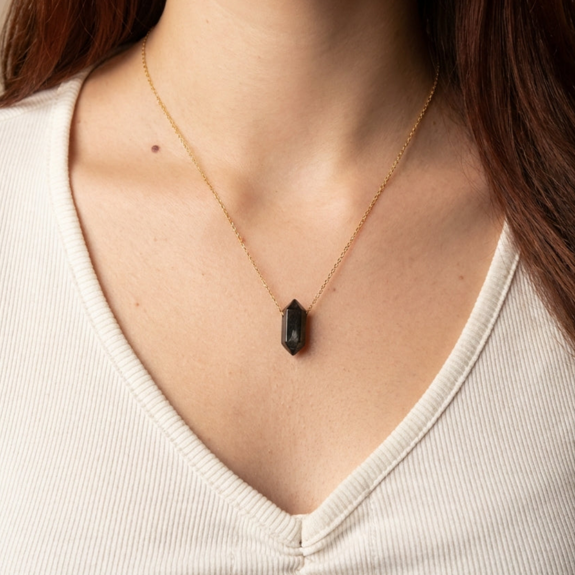Гривна от Черен Турмалин, Хематит и Цирконии за Защита И Стабилност