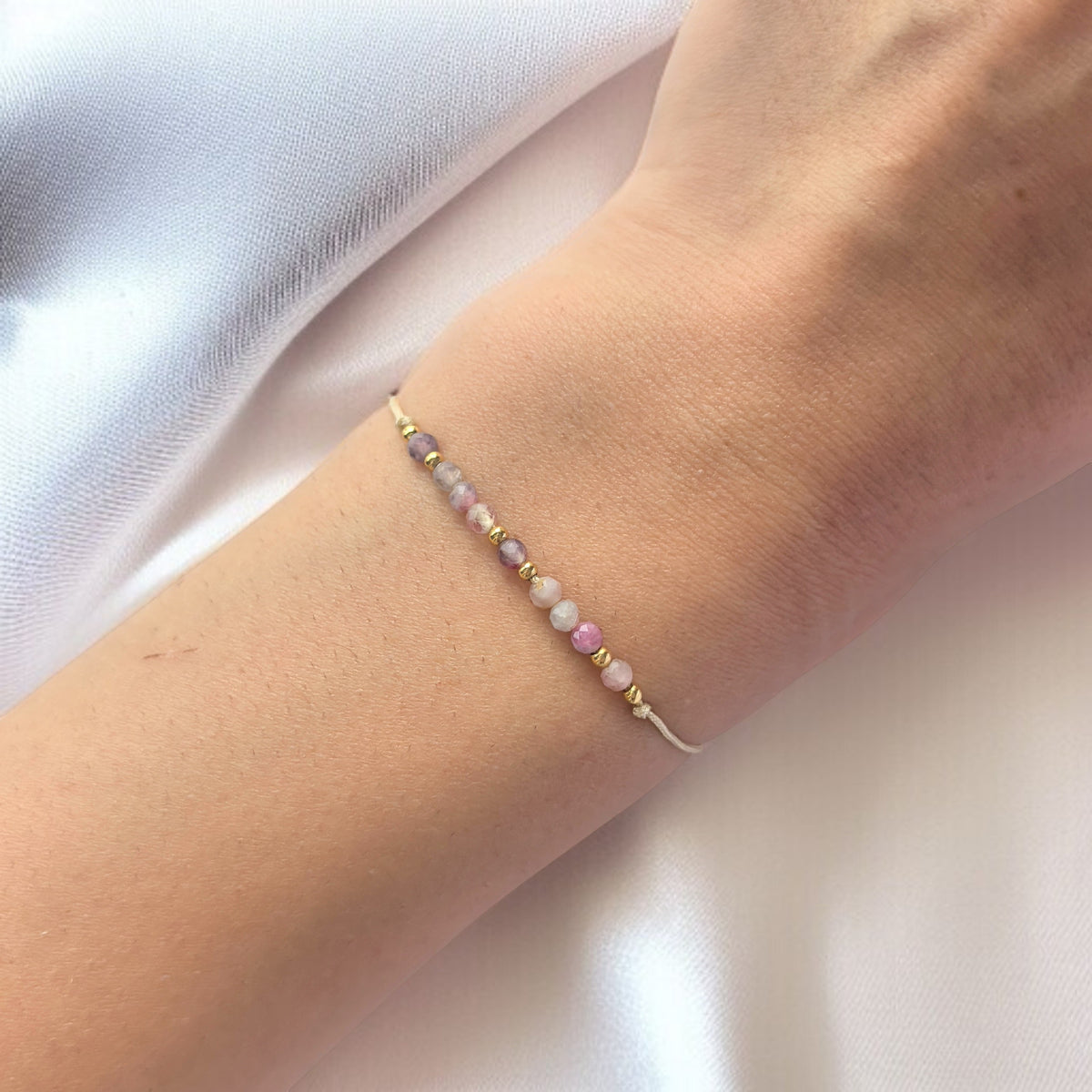 Материали: Восъчна корда, Мъниста от Медицинска Стомана и истински Розов Турмалин