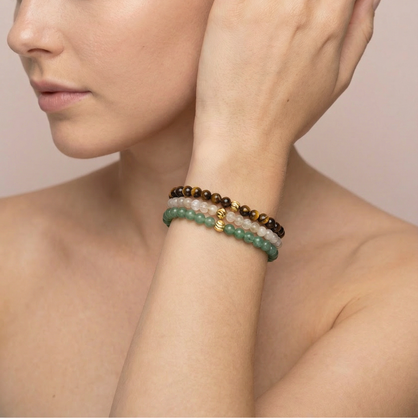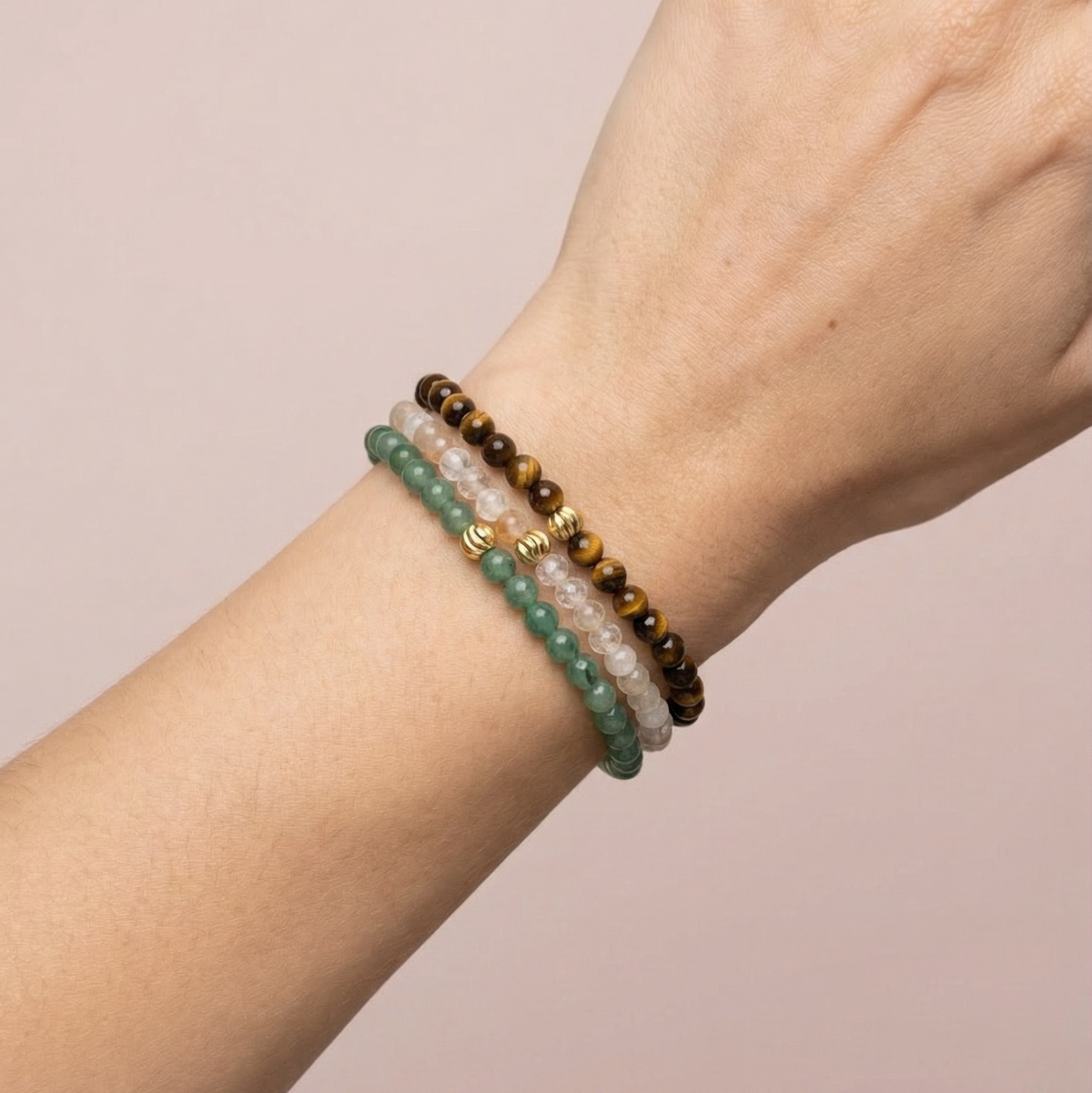 Мини гривни за Привличане на Пари от Цитрин, Тигрово око и Зелен авантюрин